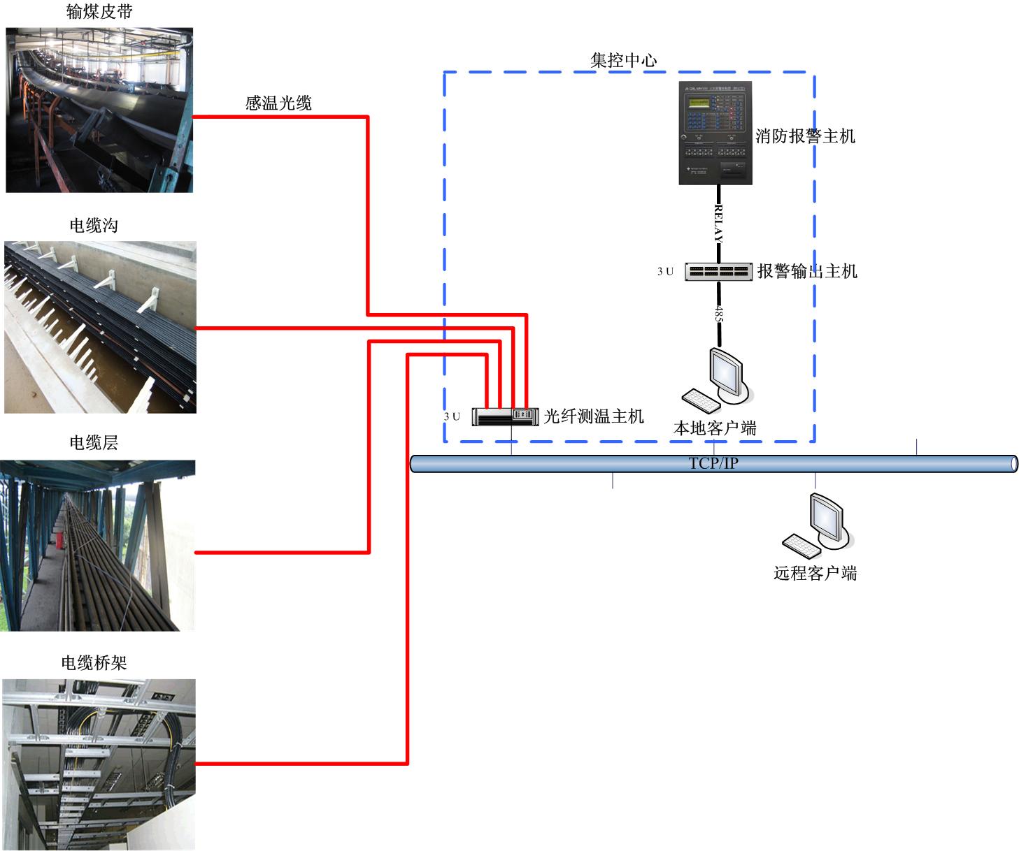 為此,迅捷光通科技有限公司適時地開發出線型光纖感溫火災探測系統,實時對電纜進行溫度監測,并進行預警和報警。該系統采用了全光纖傳感無源測溫方式,消除了監測系統自身的安全隱患,極大提高了監測系統對電力溫度監測的可用性。該光纖測溫系統被很多電廠和供電公司使用,大大降低了火災事故的發生,真正地做到防患于未然,符合電力行業“安全第一,預防為主”的安全思想。