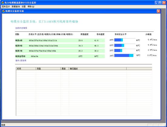 Ampacity電力電纜載流量分析軟件系統用于準確實時計算出監測區域內所有回路的電纜導體溫度和短時使用電流,提供完整的電纜負荷安全監測的解決方案。Ampacity電力電纜載流量分析軟件系統實時從分布式光纖測溫系統獲取溫度數據,并采集回路電纜狀態實時數據作為分析基礎數據。Ampacity電力電纜載流量分析軟件系統基于IEC60287標準實現動態載流量計算,系統局部界面集成了整條電纜表面溫度曲線顯示,發現異常情況則向報警設備發送報警指令(根據用戶需要將報警信息發送給指定用戶)。